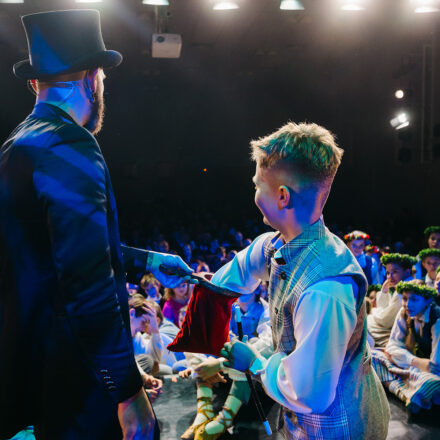 Noslēdzošais – trešais, bērnu koncerts 10. decembrī plkst. 16.00, kur svētku sajūta turpināja plūst pār malām un karameles smarža virmoja gaisā! Uz skatuves kāpa lielie rūķi – Jana un Mārtiņš, deju kolektīvs “Sienāzītis” (vadītājs Mārtiņš Pēdājs), vokālie ansambļi: “Dzeltenā zemūdene” (vadītāja Lāsma Streiķe) un “Mazputniņi” (vadītāja Ilona Koroševska). Pārsteigumā – burvju mākslinieks Robijs Trankalis.