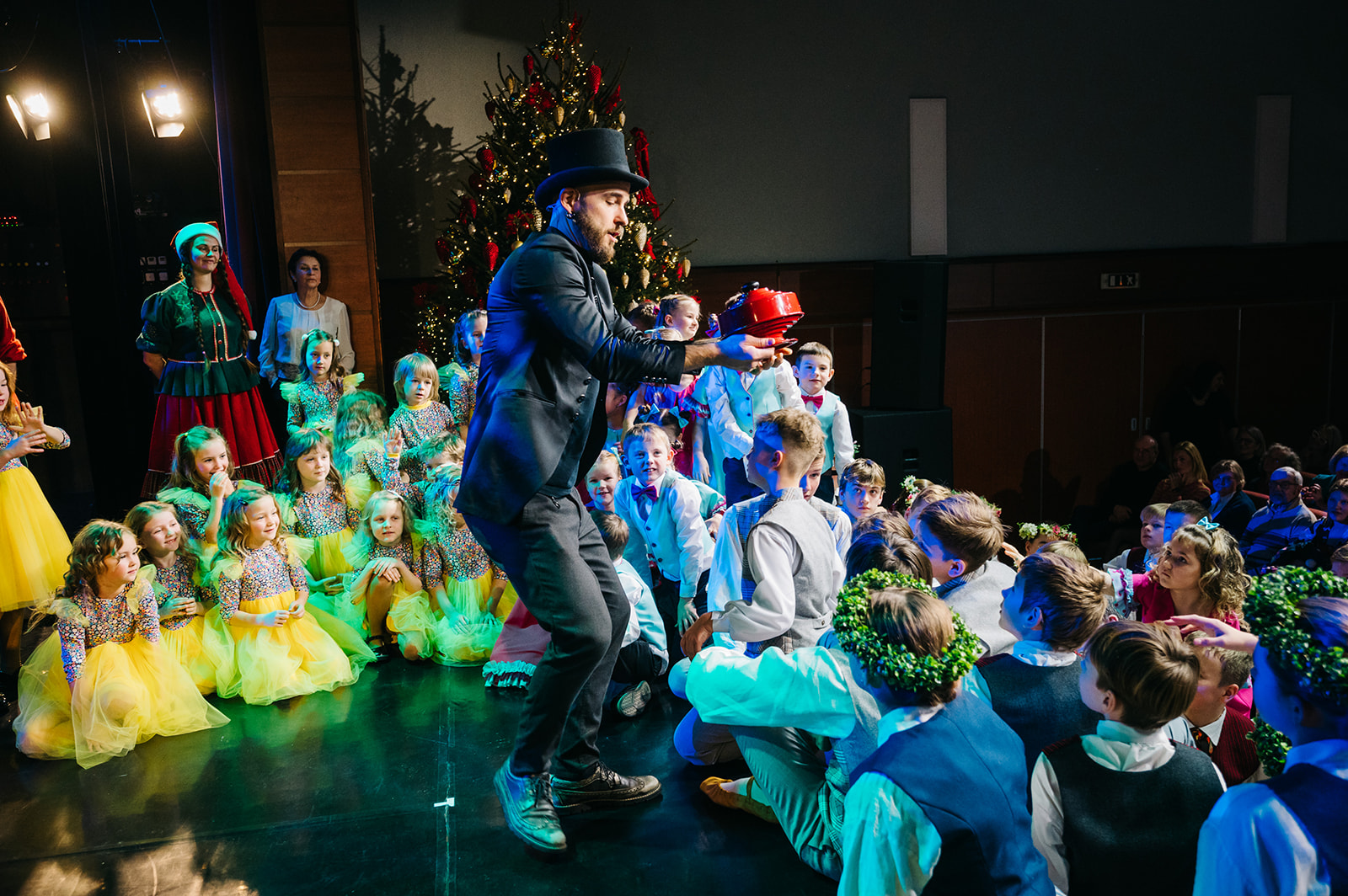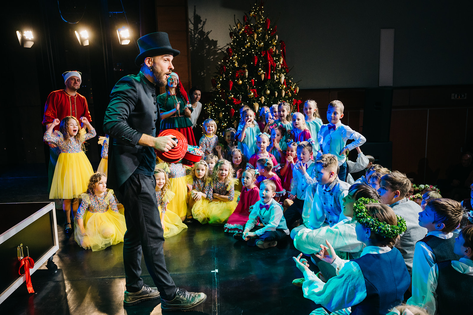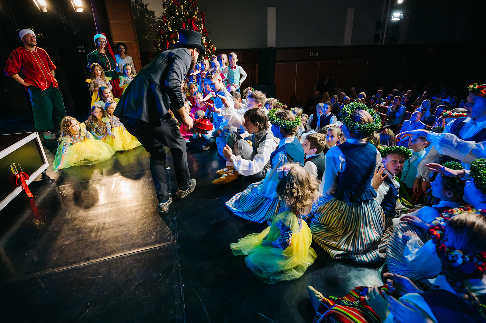 Noslēdzošais – trešais, bērnu koncerts 10. decembrī plkst. 16.00, kur svētku sajūta turpināja plūst pār malām un karameles smarža virmoja gaisā! Uz skatuves kāpa lielie rūķi – Jana un Mārtiņš, deju kolektīvs “Sienāzītis” (vadītājs Mārtiņš Pēdājs), vokālie ansambļi: “Dzeltenā zemūdene” (vadītāja Lāsma Streiķe) un “Mazputniņi” (vadītāja Ilona Koroševska). Pārsteigumā – burvju mākslinieks Robijs Trankalis.